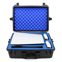Ofreciendo la máxima protección para su consola, este estuche rígido para transporte de PS5 cuenta con una válvula de liberación de presión hermética que hace que el bolso sea completamente impermeable. El interior de espuma de primera calidad también garantizará que su tecnología y accesorios estén protegidos contra golpes y colisiones, y el exterior duradero es completamente resistente a los golpes. Los anillos de candado dobles brindan seguridad adicional y los compartimentos internos ofrecen mucho espacio para dos controladores, cables, auriculares y accesorios adicionales. Puede transportar este bolso estilo maletín gracias a un cómodo asa plegable y disfrutar de la total confianza de saber que su consola está a salvo del polvo, la suciedad y la humedad.