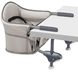 La silla Chicco Caddy Hook On tiene un diseño que se gira para apretar con brazos de goma que sujetan firmemente las mesas sin rayarlas. Diseñada para niños de hasta 37 libras, esta silla tiene un arnés de seguridad de 3 puntos y respaldo acolchado con respaldo alto. La funda del asiento se pone y se quita para facilitar la limpieza después de la hora de comer. Esta es una silla compacta que mide solo 20" x 13,8" x 14,5" y puede caber fácilmente en la parte trasera de un automóvil o en la esquina de una habitación de hotel. La silla Chicco Caddy Hook On es fácil de usar y tiene un excelente precio.