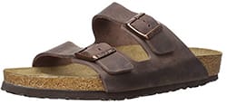 Entre las mejores sandalias de paseo para viajar, las sandalias Birkenstock Arizona Leather son un clásico. Estas sandalias de dos tiras son ajustables con hebillas de metal. La plantilla súper suave está hecha de látex de corcho y forrada con ante. La plantilla es de cuero auténtico, la suela de EVA y la parte superior es de cuero nobuk engrasado. Todos estos materiales se combinan para crear una sandalia súper cómoda que ha sido muy popular desde su lanzamiento en 1973. La sandalia de cuero Birkenstock Arizona es un ícono atemporal que está preparado para todas tus aventuras.