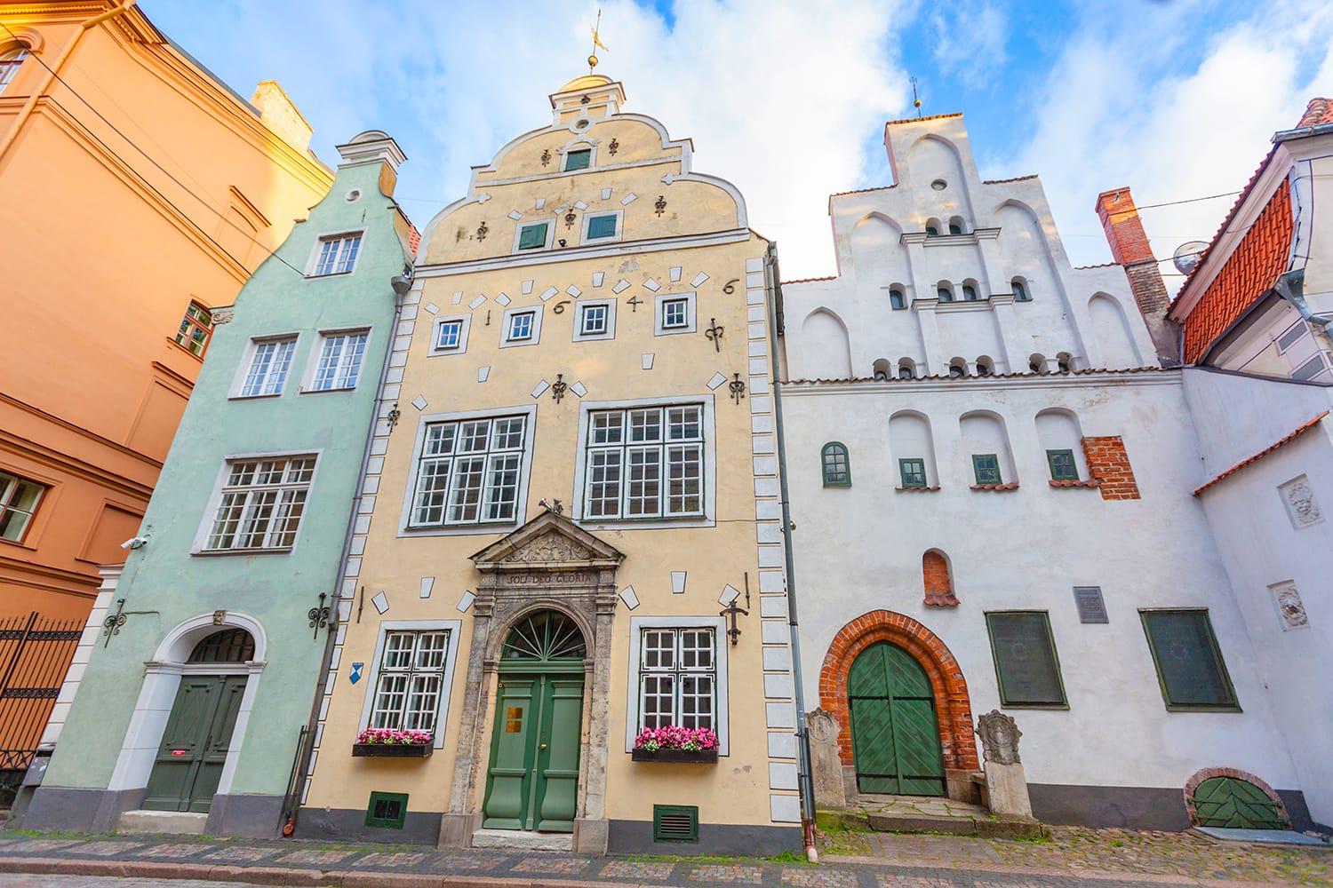 Hay muchos edificios excepcionalmente bien conservados en toda Riga, pero en el complejo de los Tres Hermanos se encuentran los edificios residenciales más antiguos de la ciudad. Estos tres edificios contiguos fueron construidos entre los siglos XV y XVII y albergan a artesanos locales. Cada uno tiene su propio diseño muy diferente, lleno de florituras y peculiaridades, como la inscripción "Gloria sólo a Dios" sobre el edificio del medio.