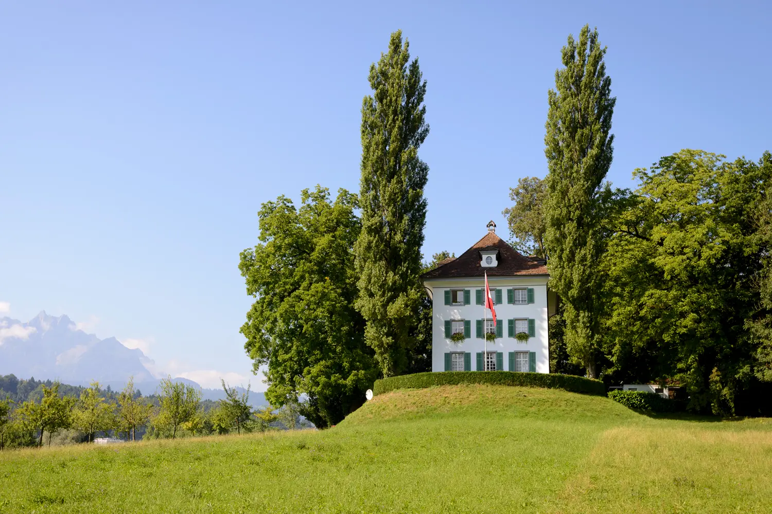 Si está buscando explorar castillos suizos mientras esté en Lucerna, no busque más que el Castillo de Meggenhorn. Este elegante castillo del siglo XIX está ubicado en una pequeña península en el lago de Lucerna, aproximadamente a cuatro millas del centro de Lucerna. Es una atracción muy fácil de alcanzar por tu cuenta, ya que está a sólo 10 minutos en coche desde la ciudad o a 15 minutos en autobús (con una caminata de cinco minutos hasta el castillo). Sin embargo, tenga en cuenta que el estacionamiento en la propiedad es muy limitado. En verano, también puedes optar por tomar el ferry de Lucerna a Meggenhorn, que dura 30 minutos.