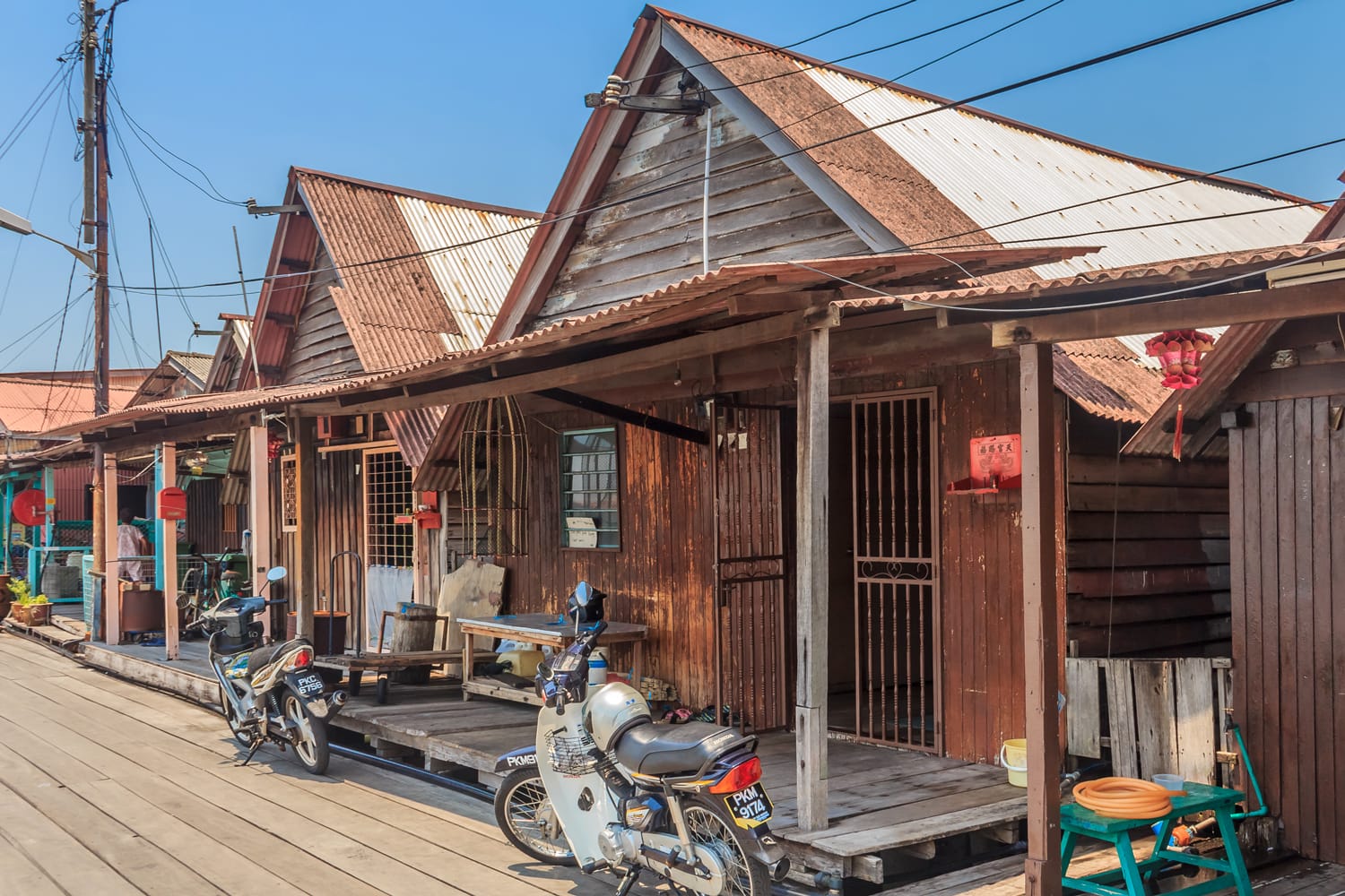 A lo largo de la costa de George Town hay muchos antiguos embarcaderos chinos de madera que datan del siglo XIX. Estos embarcaderos fueron construidos por diferentes clanes chinos que facilitaron la inmigración desde el continente chino y ayudaron a sus compañeros "miembros del clan" a establecerse en Penang.