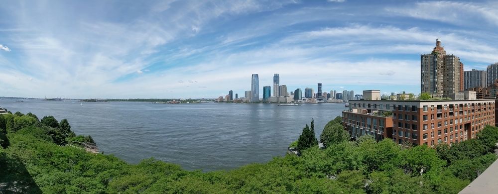 Panorama sobre Hudson y Jersey City en Battery Park City, Nueva York, NY – junio de 2022