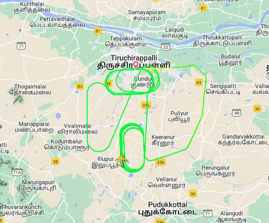 Aterrizando de regreso en Tiruchirappalli por la pista 27