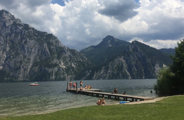 Una playa para bañarse en Traunsee, un lago alpino en un lago en el centro-norte de Austria. Crédito de la imagen: Donna Wheeler.