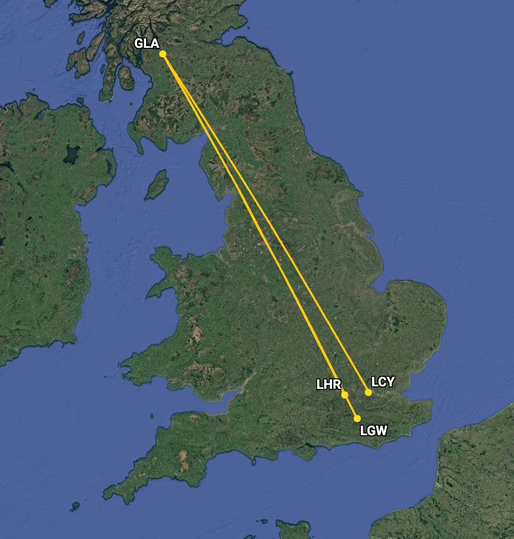 | Bloque de minutos programado de British Airways entre Londres-Gatwick y Glasgow |