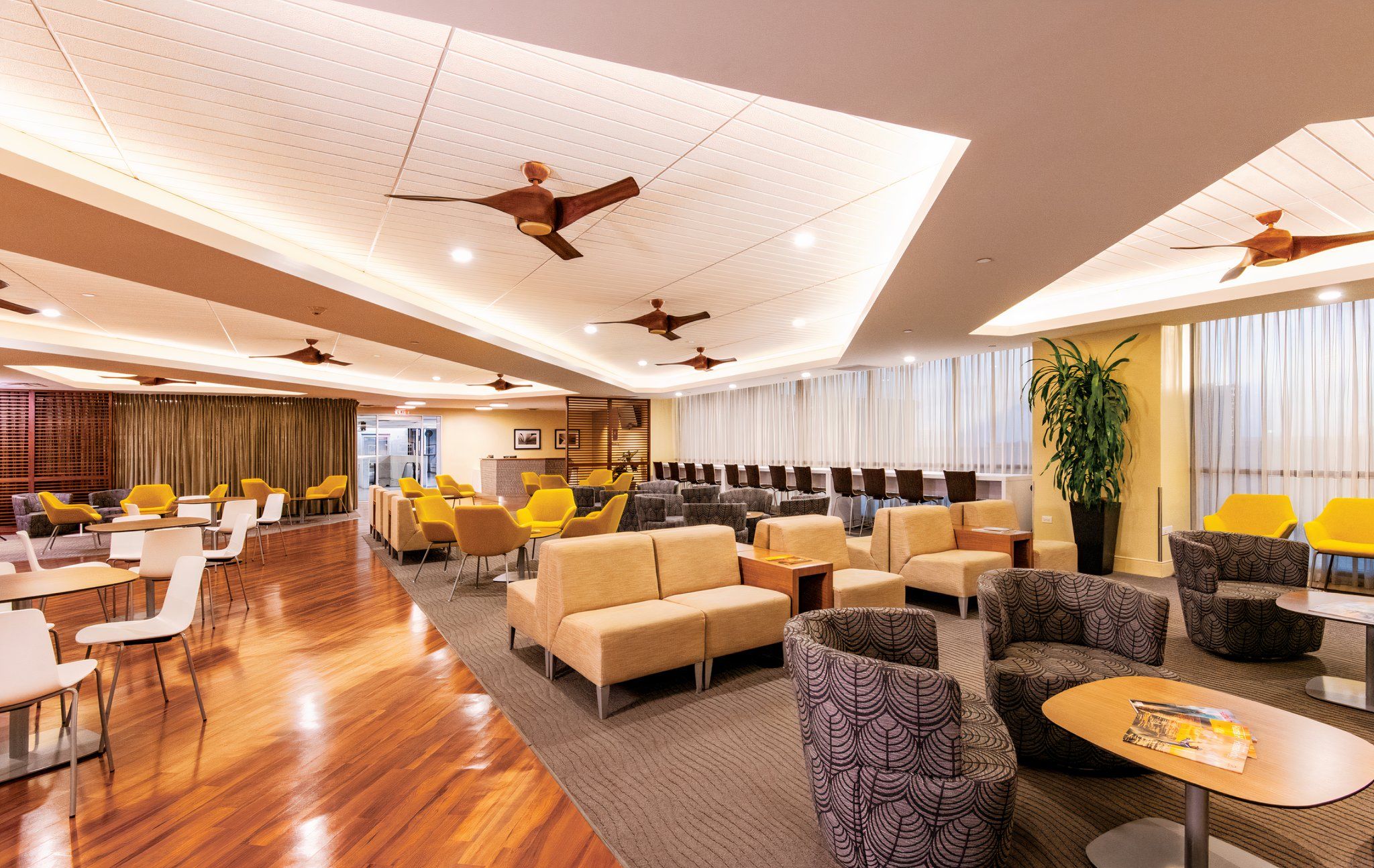 , los pasajeros de clase ejecutiva pueden disfrutar del Premier Club Lounge, que ofrece refrigerios, bebidas y Wi-Fi de alta velocidad de cortesía. El salón está diseñado para reflejar la belleza natural de Hawái, con una exuberante vegetación y una decoración de inspiración hawaiana que brindan un escape sereno de la concurrida terminal. Para los viajeros que salen de destinos internacionales, el acceso a las salas VIP se proporciona a través de aerolíneas asociadas, lo que garantiza una experiencia premium constante sin importar desde dónde vuelen.