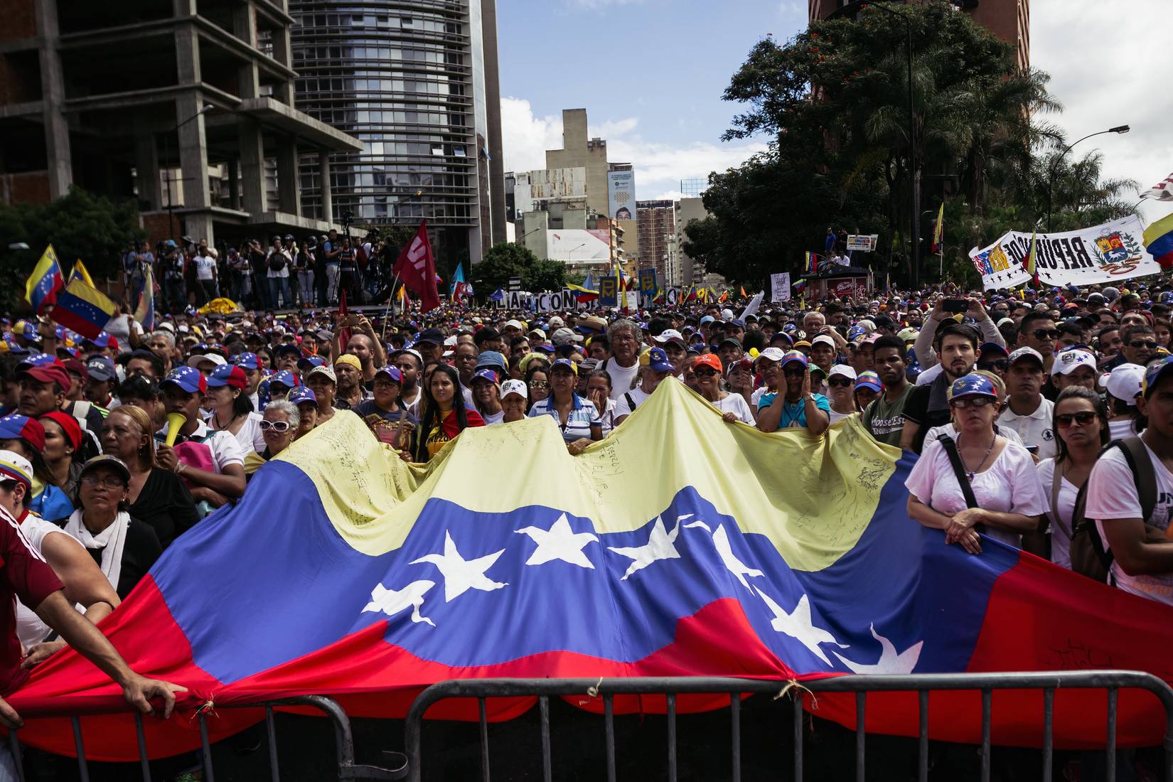 Venezuela; Grupo de manifestantes muestra su apoyo a Juan Guaidó. Durante su juramentoCrédito: vía Shutterstock