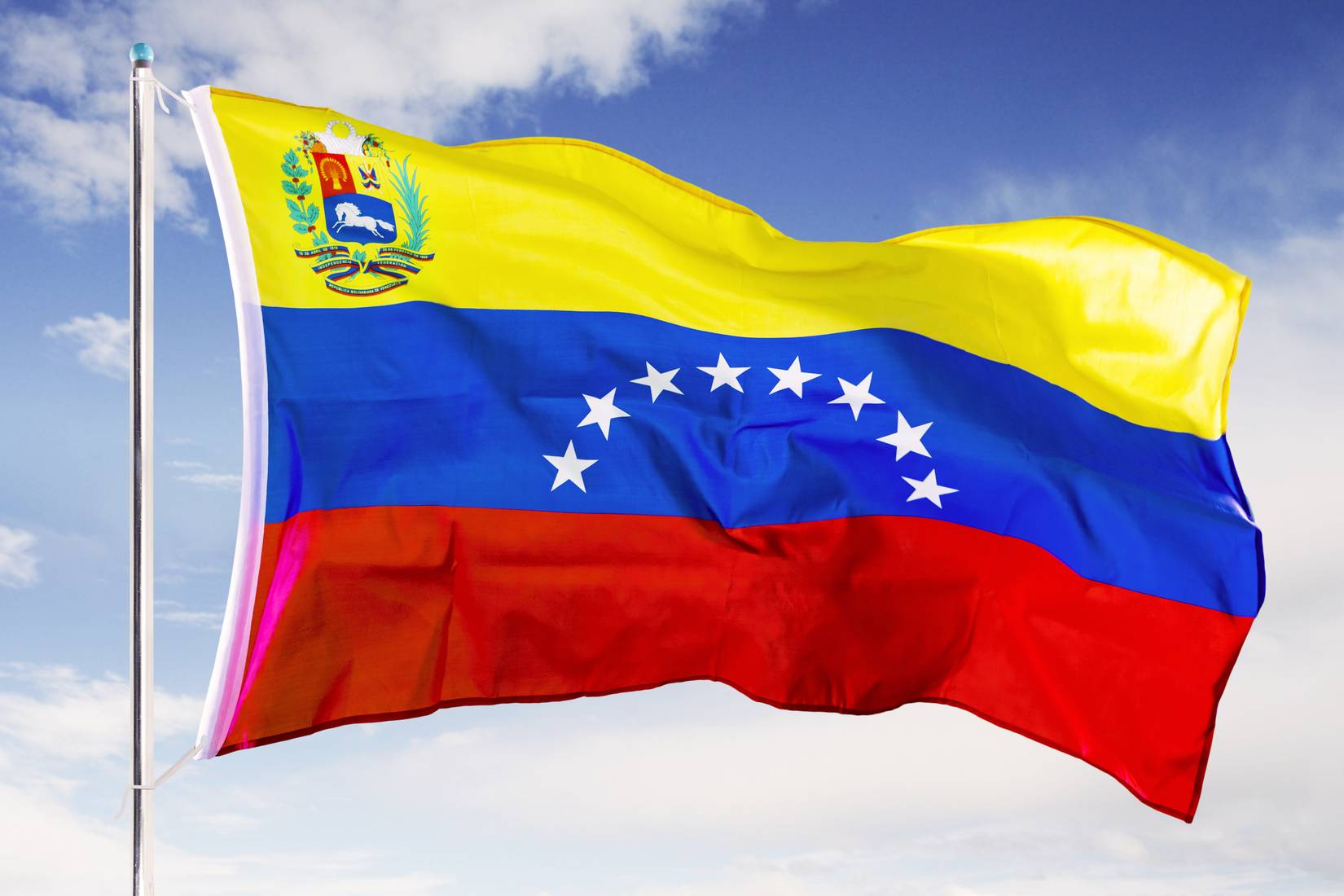 Bandera nacional de Venezuela ondeando en un asta bajo un cielo azulCrédito: vía Dreamstime