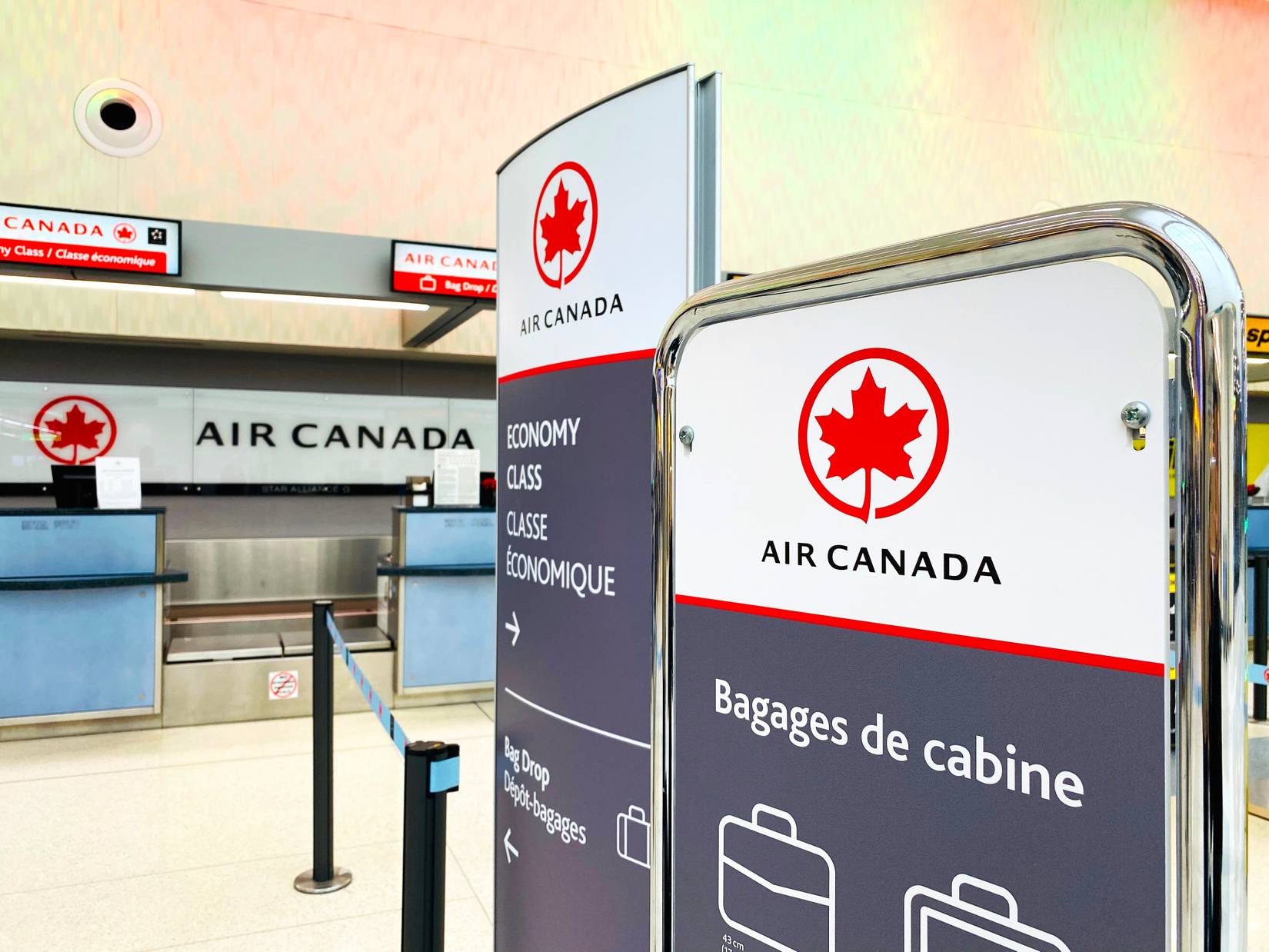 Mostrador de facturación de equipaje de Air Canada en el aeropuerto de Columbis, Ohio, EE. UU. Crédito: Shutterstock