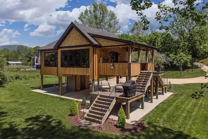 Con un interior moderno y una ubicación más suburbana, esta cabaña no es ideal para aquellos que quieren quedarse justo en medio de la cordillera de los Apalaches.