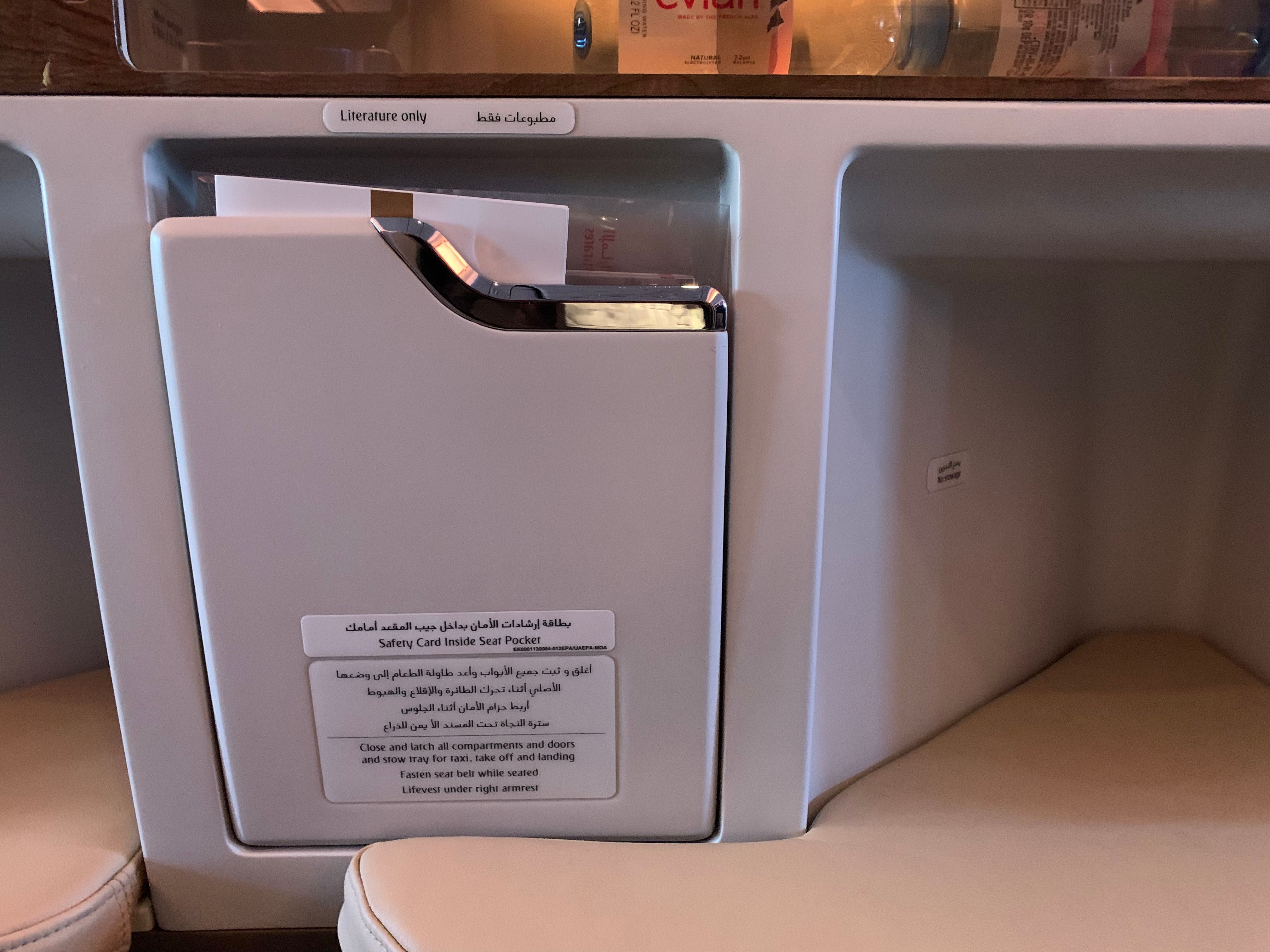Todos los asientos se pueden convertir en camas reclinables y ahora ofrecen más espacio de almacenamiento que las cabinas más antiguas. Los asientos, las luces y los divisores de privacidad se pueden controlar mediante los botones de control de la consola lateral, pero también con el control remoto, la tableta de control desmontable o la enorme pantalla IFE.