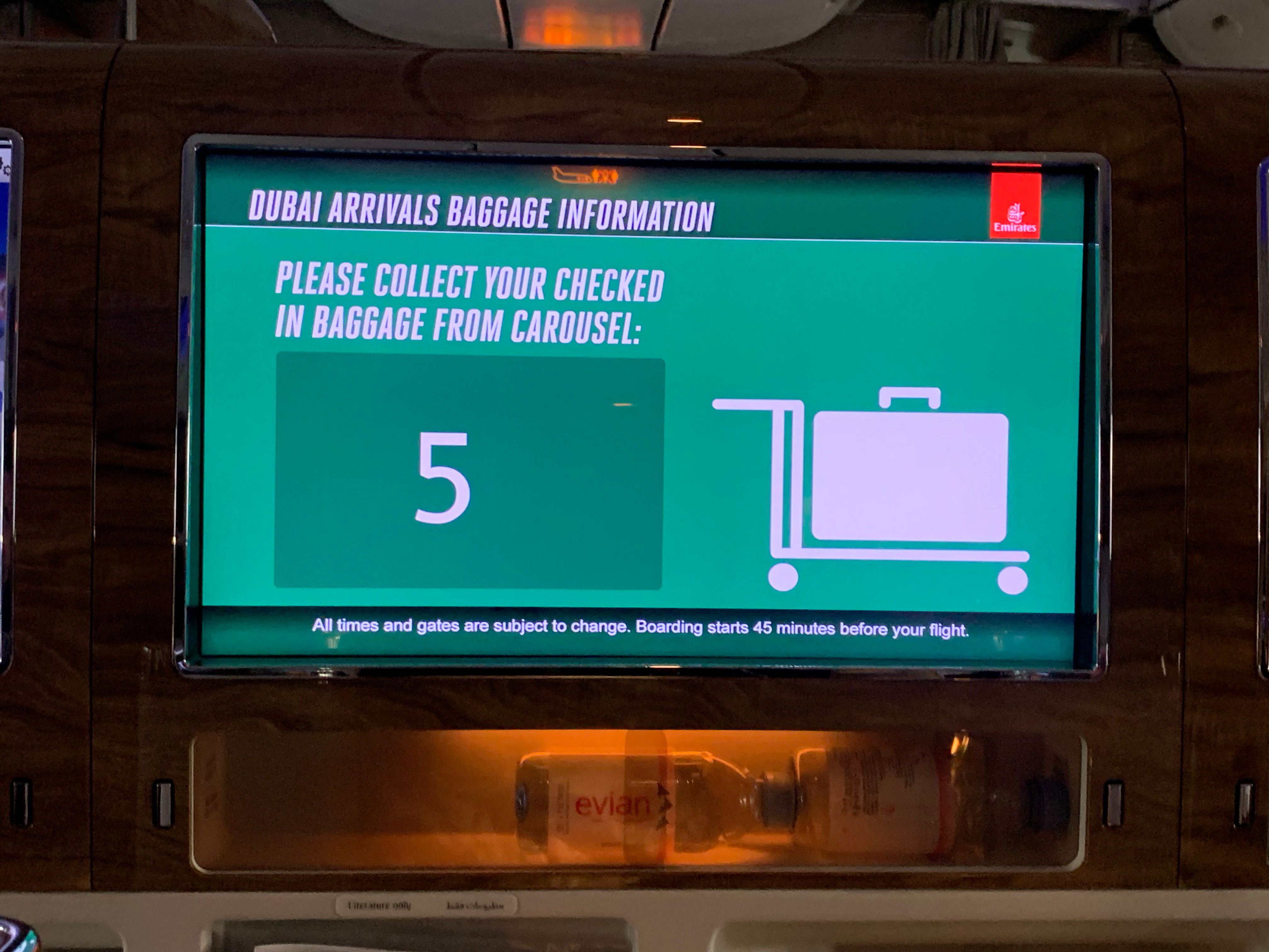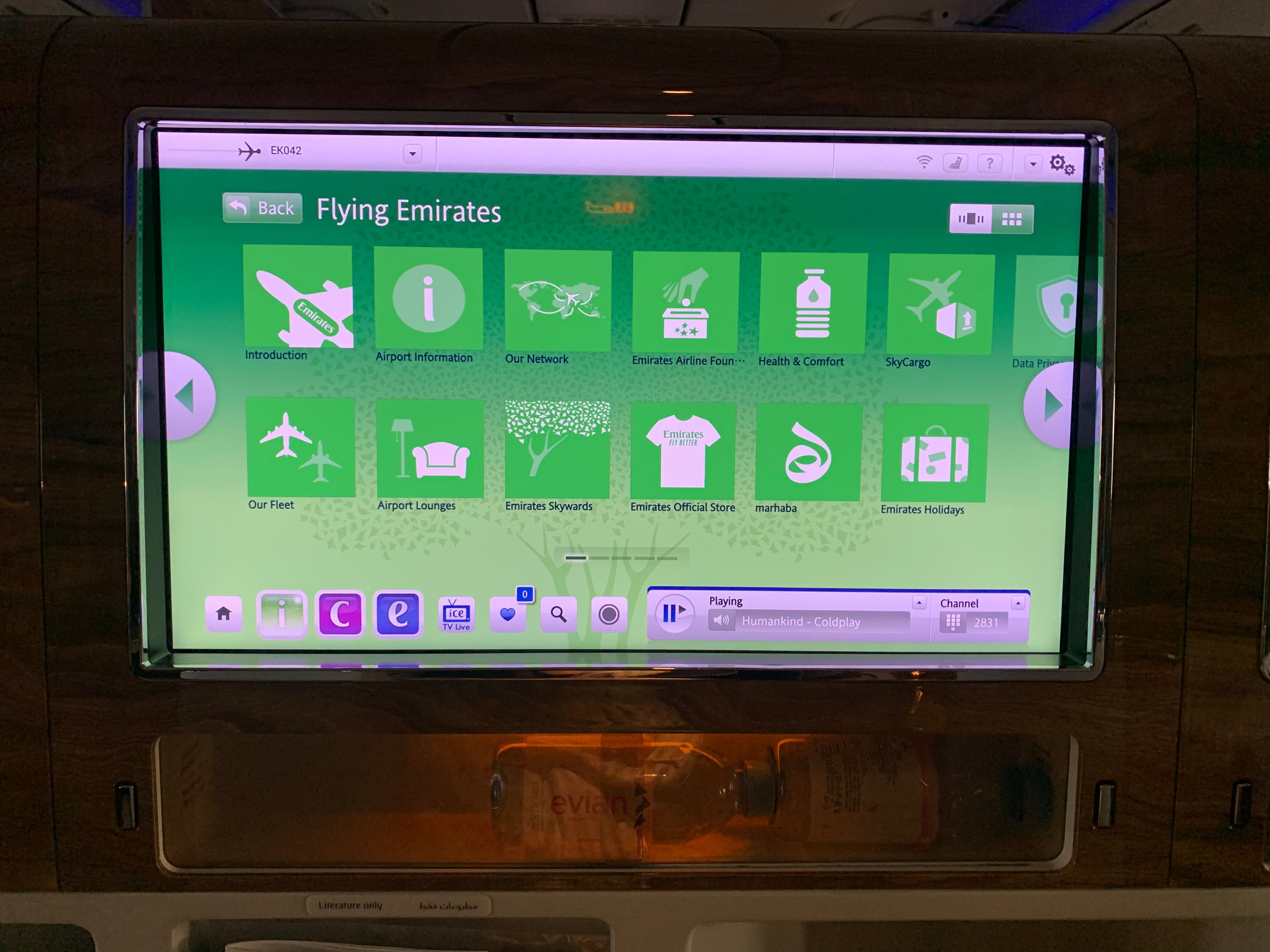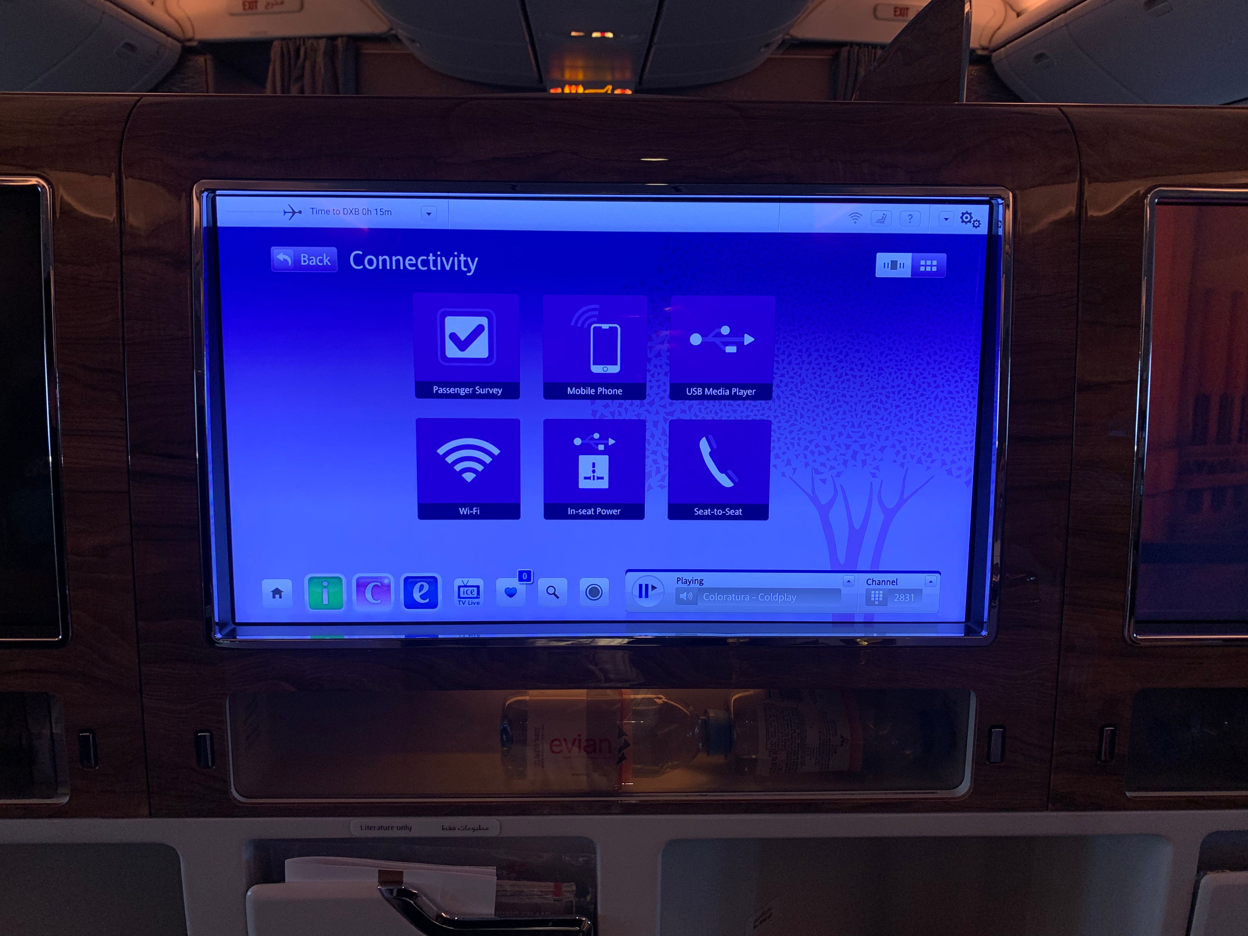Además, desde la pantalla IFE, los pasajeros pueden ver información sobre Emirates, su red de rutas, sus servicios y su sede en Dubai. Los pasajeros que vuelan a DXB también pueden ver la información de la conexión del vuelo antes de llegar, lo cual es un servicio útil considerando que Emirates opera un modelo hub and radios. También se proporciona información como los números de cinta de equipaje.