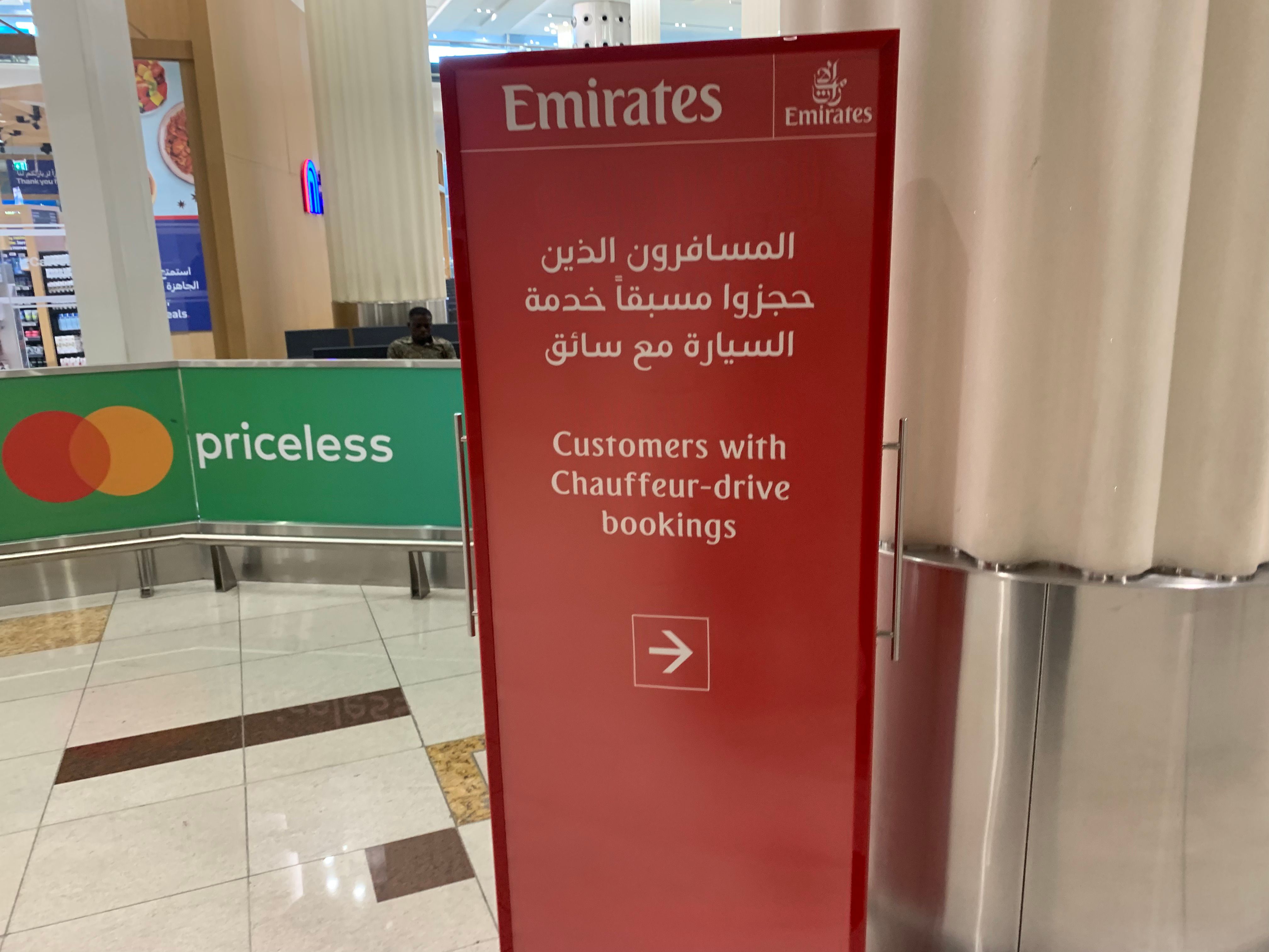 Los pasajeros de clase ejecutiva y de primera clase que lleguen a Dubai (y a varios otros destinos en todo el mundo) pueden utilizar el servicio de chófer gratuito de la aerolínea para viajar hacia y desde el aeropuerto.