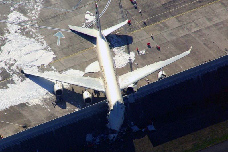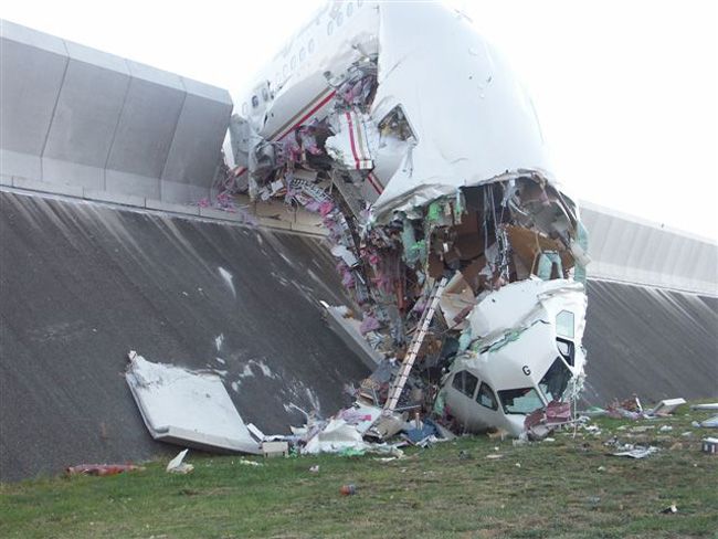 El quadjet chocó contra la barrera de hormigón en un ángulo de aproximadamente 30 grados. Como se ve en las imágenes, la parte inferior de la cabina delantera se rasgó unos 15 metros (49,2 pies) y se dobló hacia abajo al atravesar la pared. La cabina se estrelló contra el suelo al otro lado de la pared. Además, los motores uno y dos del lado izquierdo de la aeronave entraron en contacto con la pared y sufrieron importantes daños.