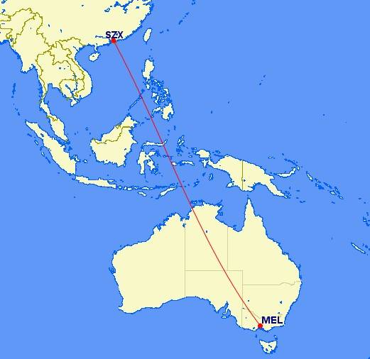 Como lo detallaRutas aéreas, el servicio saldrá del Aeropuerto Internacional Shenzhen Bao'an (SZX) como ZH811 los lunes, jueves y sábados a las 23:55, y viajará durante la noche para llegar a Melbourne a las 13:00 del día siguiente. El vuelo directo durará aproximadamente nueve horas. El servicio de regreso partirá del Aeropuerto Internacional Tullamarine de Melbourne (MEL) como ZH812, regresando desde la puerta a las 22:15 los martes, viernes y domingo, para un viaje de ocho horas y 45 minutos a casa, con una hora prevista de llegada a Shenzhen a las 05:00 del día siguiente.