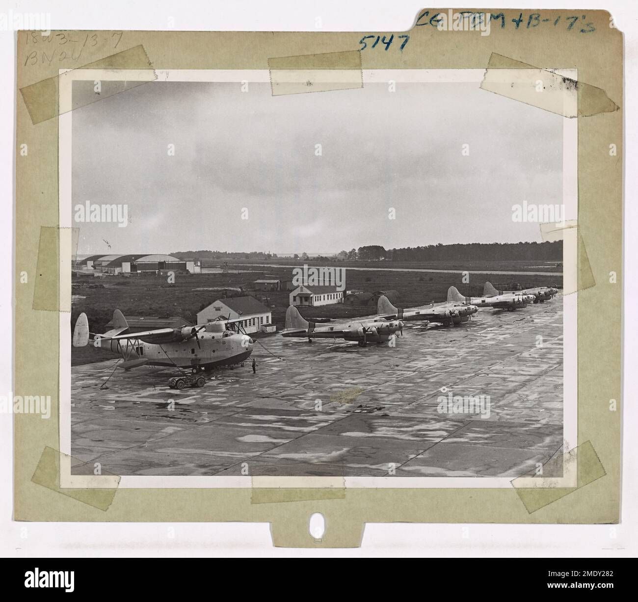 "Empleados por la Marina de los EE. UU. como bombarderos de patrulla en la Segunda Guerra Mundial y la Guerra de Corea, estos aviones eran más altos, más largos y tenían una envergadura más amplia que el B-17 Flying Fortress. Es difícil apreciar cuánto más grande era el PBM hasta que veías uno al lado de un B-17... Al igual que el bombardero pesado B-17, el PBM estaba adornado con ametralladoras calibre .50 y podía transportar una carga útil formidable a largas distancias. De hecho, con una carga útil similar, el PBM tenía patas más largas que el Fortress y, si era necesario, el PBM podía volar durante horas con un solo motor”.