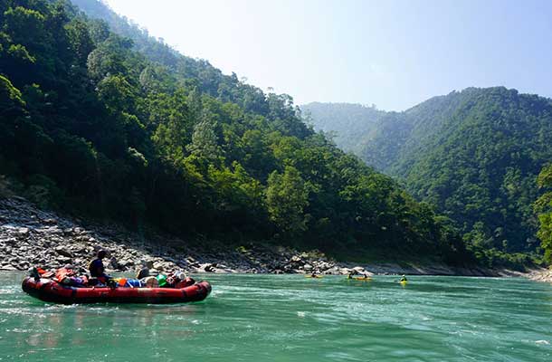 El río Karnali corre muy cerca de Bardia, por lo que una forma única de experimentar este parque es combinarlo con un viaje de diez días de rafting en rápidos por el Karnali.