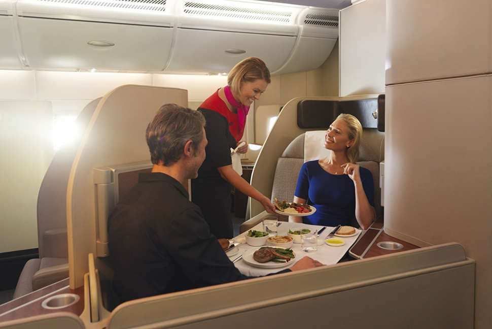 Con primera clase, business, premium y económica a bordo, los pasajeros tienen varias opciones. Dado que Qantas traerá primera clase a la ruta por primera vez, los pasajeros pueden disfrutar de las maravillas de todo lo que necesitarán a bordo del vuelo. Con un botón, puede reclinar su asiento, cerrar las persianas electrónicas de las ventanas y disfrutar de un sueño reparador con edredones Sheridan, un colchón y una exquisita carta de almohadas. También hay una otomana para invitar a familiares, amigos o colegas a tomar un bocado o una copa de champán.