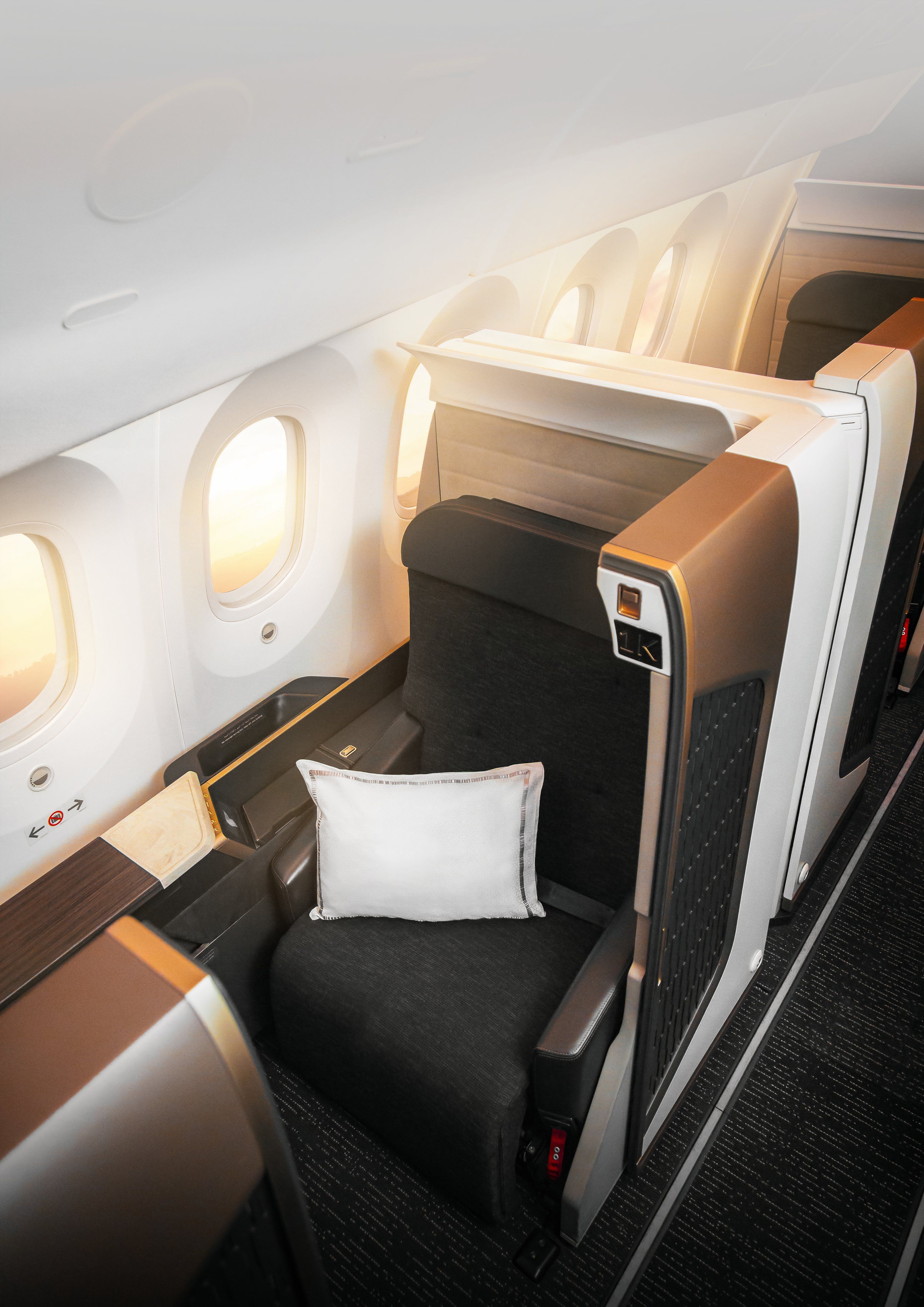 Oman Air configura sus 787 en un diseño de tres cabinas: Business Studio, Business y Economy, siendo el nuevo Business Studio uno de losel más espacioso del mundo. Cada Business Studio tiene paredes privadas, asientos reclinables de 82 pulgadas, una pantalla de entretenimiento de 23 pulgadas, WiFi de cortesía y comidas a la carta.