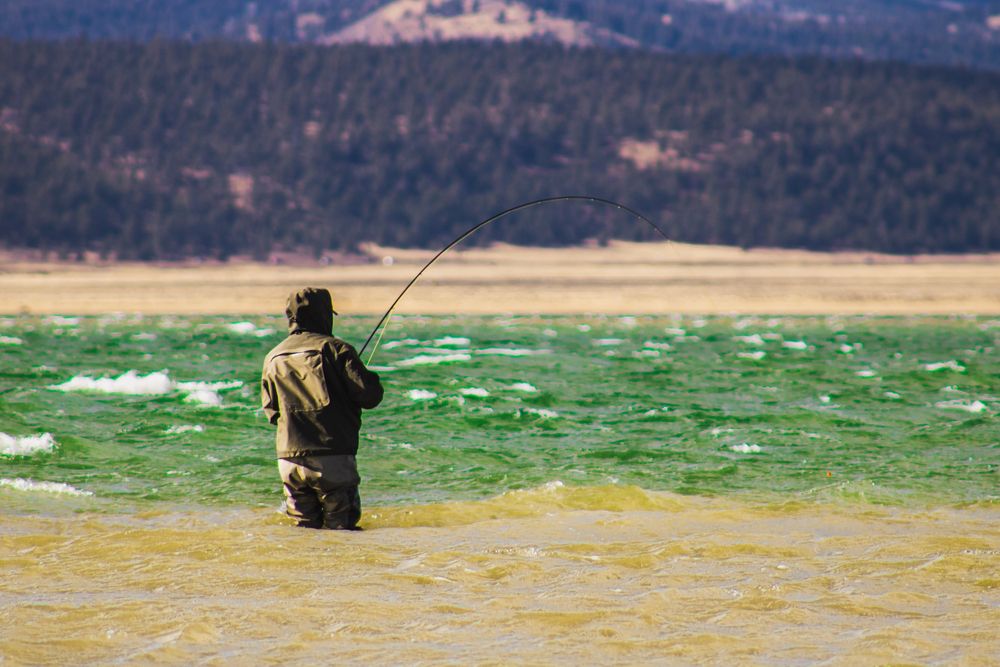 Pescador en el embalse de Antero en el condado de Park, cerca de Colorado Springs en los Estados Unidos