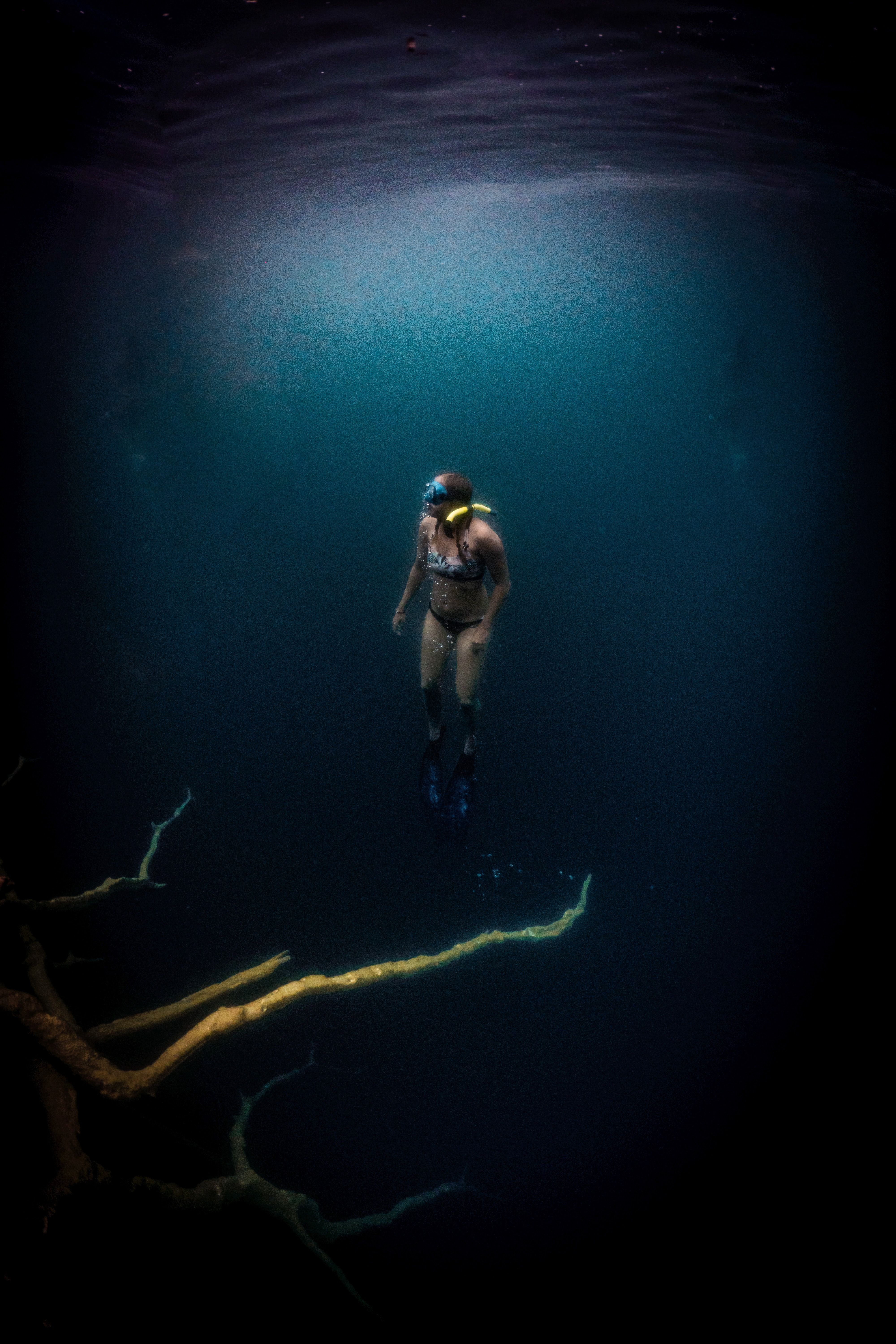 Diving in Cenote Azul, Bacalar, Mexico
