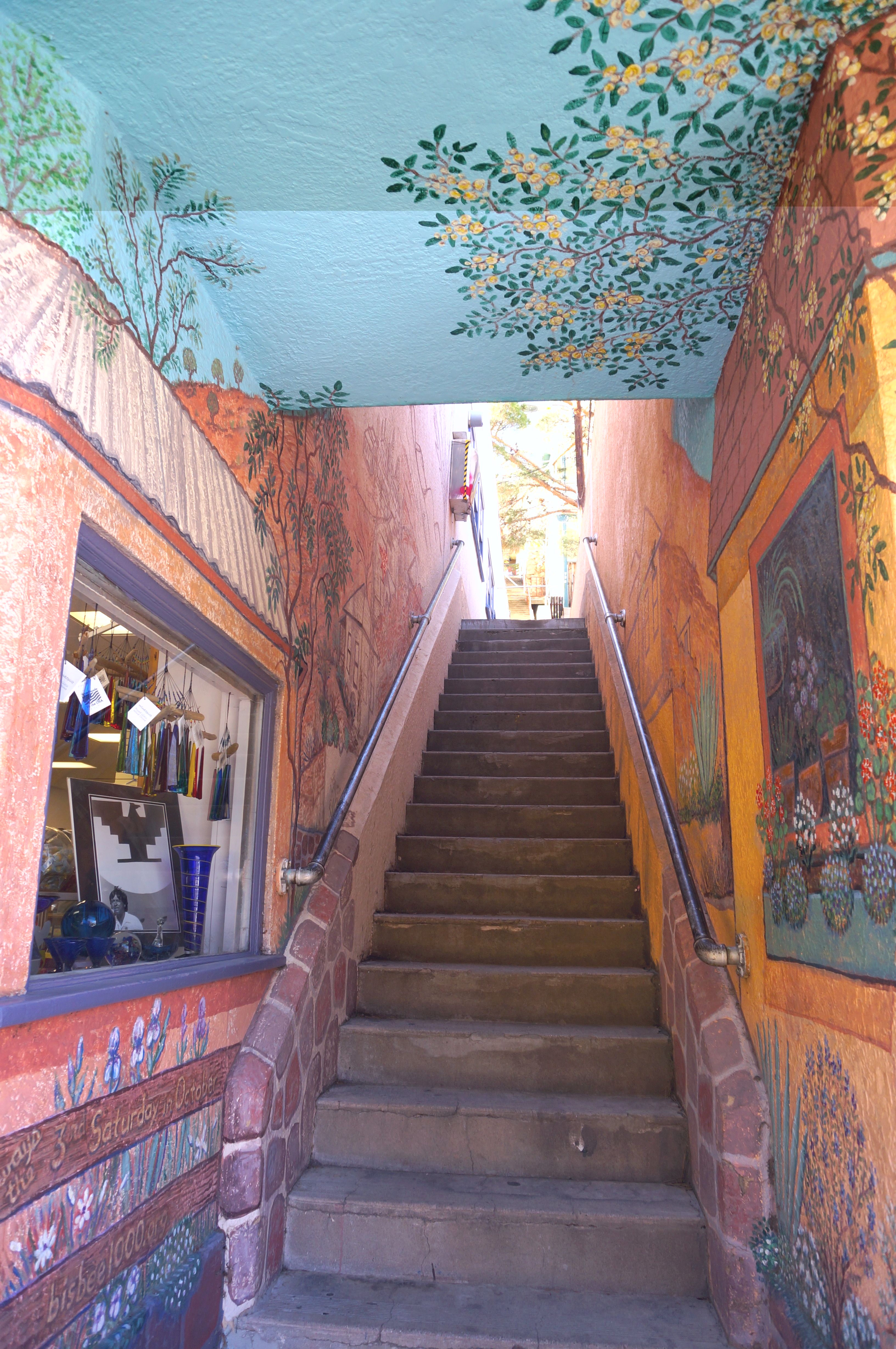 Un tramo de escaleras con hermosos murales en Bisbee, Arizona