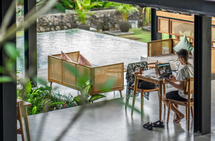 Un nómada digital en el albergue de trabajo conjunto Tribal Bali. Crédito de la imagen: Will Hatton.