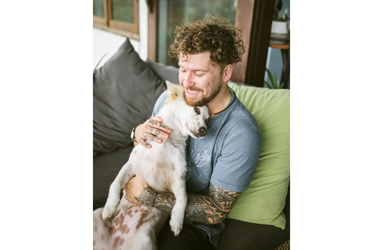 El autor con uno de sus cinco doggos rescatados. Crédito de la imagen: Will Hatton.