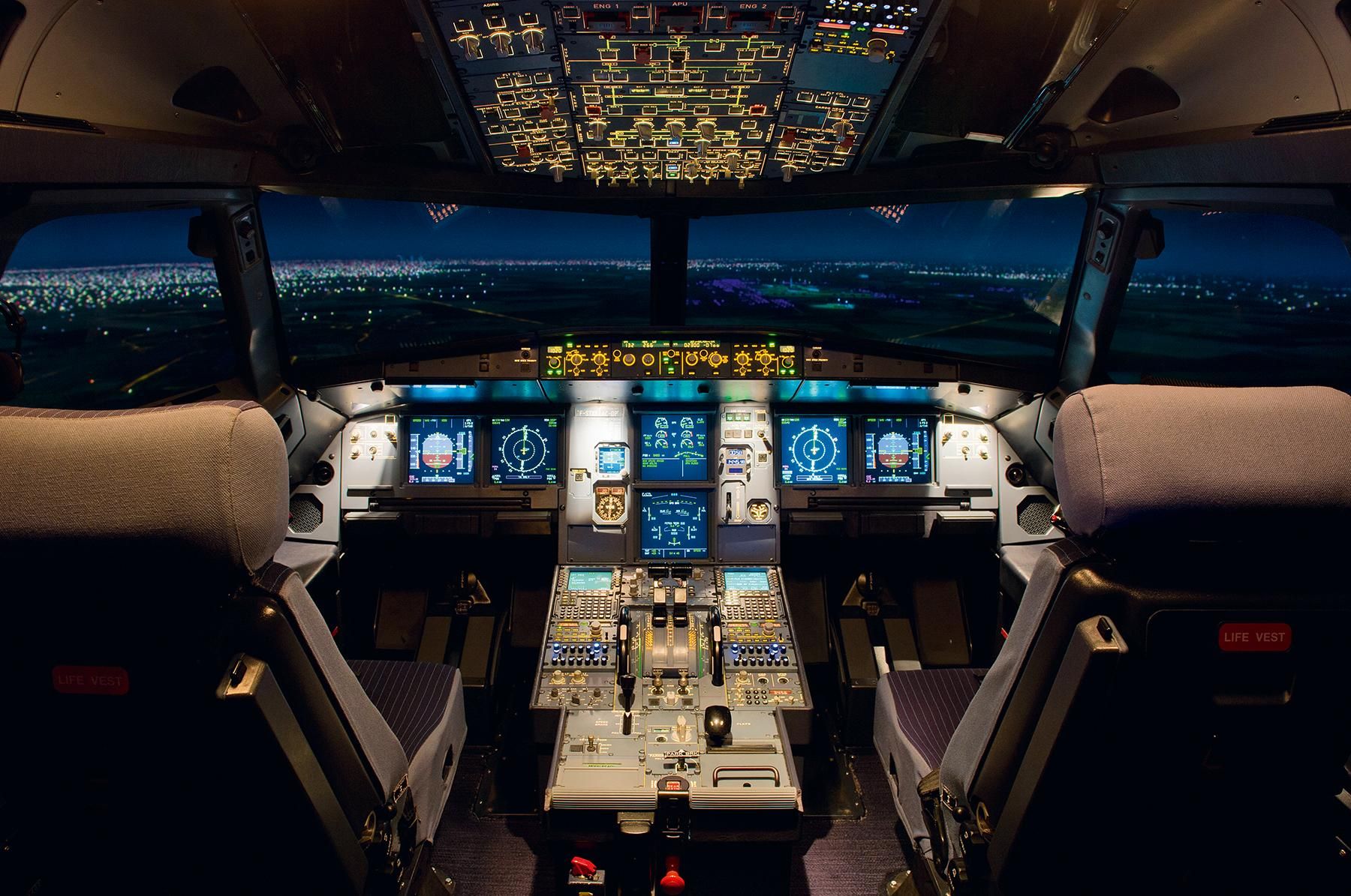 Los nuevos controles informáticos permitieron a Airbus recrear la configuración de la cabina y simplificar los controles. La palanca lateral con una sola mano hizo la experiencia más cómoda y dio a los pilotos más espacio para interactuar con los nuevos sistemas de información.