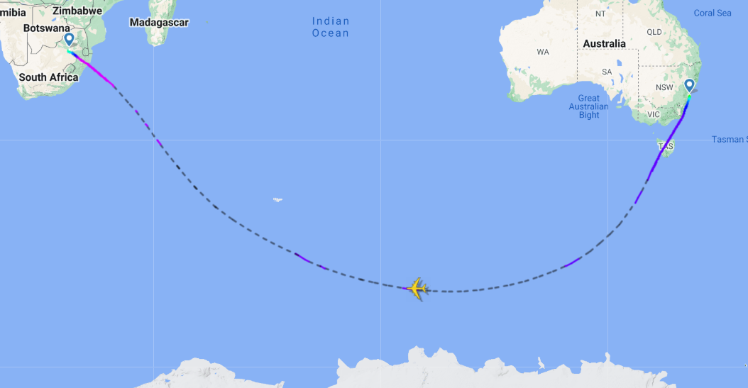 es la única aerolínea que conecta directamente el Aeropuerto Kingsford Smith de Sydney (SYD) con el Aeropuerto Internacional O. R. Tambo de Johannesburgo (JNB) de Sudáfrica.