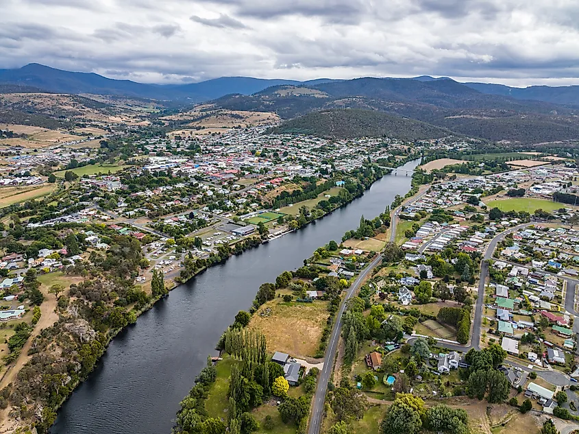El río Huon que atraviesa Huonville, Tasmania. Crédito editorial: c_burdon / Shutterstock.com