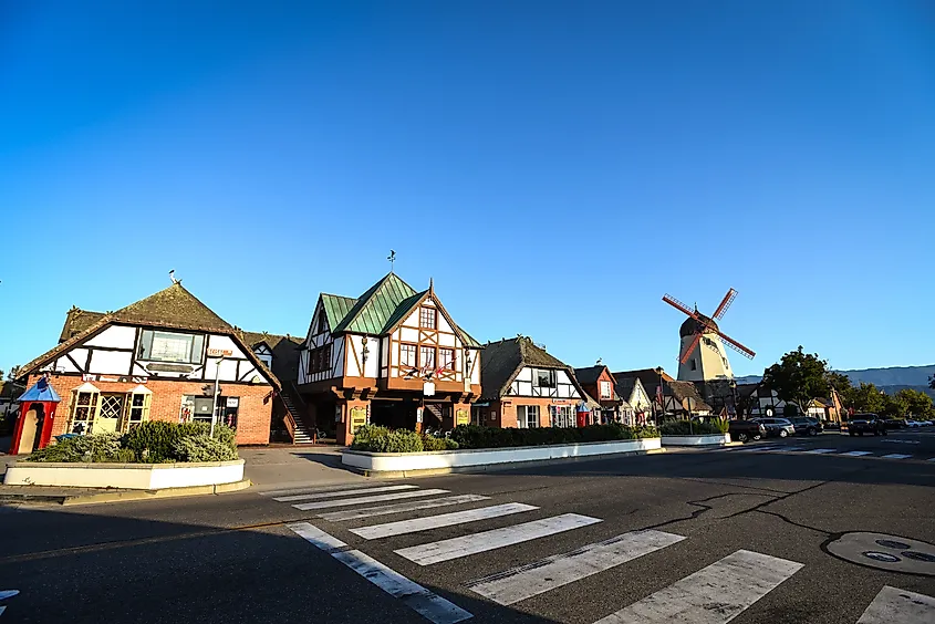 Fundada por daneses-estadounidenses en 1911, Solvang en el condado de Santa Bárbara se parece a un pueblo danés, con molinos de viento, arquitectura de estilo escandinavo y panaderías como Olsen's Danish Village Bakery. El Museo de Historia y Arte de Elverhoj ofrece una visión más profunda de las raíces danesas de la ciudad. Para el entretenimiento, el PCPA Solvang Theatrefest al aire libre presenta obras de teatro y musicales durante el verano. Además, el Museo de motocicletas antiguas de Solvang exhibe una selección rotativa de bicicletas antiguas, lo que demuestra que ya no las fabrican como antes. La ciudad también cuenta con más de 20 salas de cata de vinos como parte de la región vinícola del Valle de Santa Ynez. Solvang saltó a la fama gracias a la película Sideways (2004).