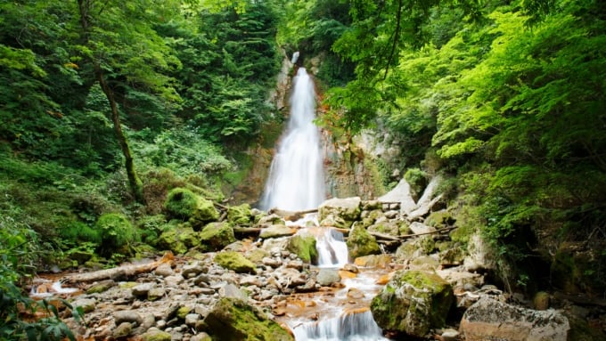 Ubicadas justo al sur del bosque de residentes de la prefectura de Iwate, las cataratas Shichitaki caen a unos 25 metros de las aguas del monte Iwate. Rodeado de exuberante vegetación o vibrante follaje otoñal, es un lugar encantador para absorber la tranquilidad de la naturaleza. Disfrute de una ruta de senderismo de ida y vuelta de una hora, sumergiéndose en el aire del bosque y los iones negativos a lo largo del camino.
