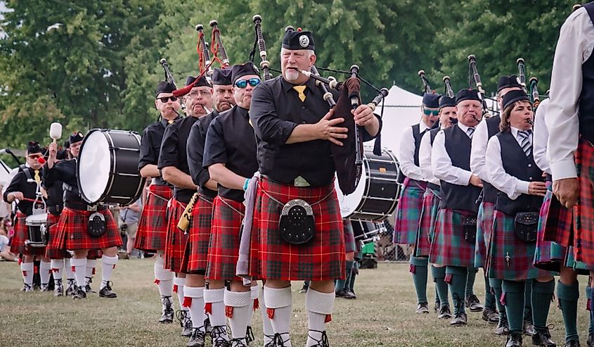 Pipe Band en Fergus durante el Festival Escocés y los Juegos de las Tierras Altas. (Crédito de la imagen Vadim Rodnev a través de Shutterstock).