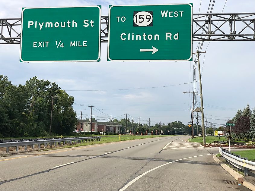 Vista a lo largo de la ruta estadounidense 46 en la salida a Clinton Road. Por Famartín, CC BY-SA 4.0,Wikimedia Commons