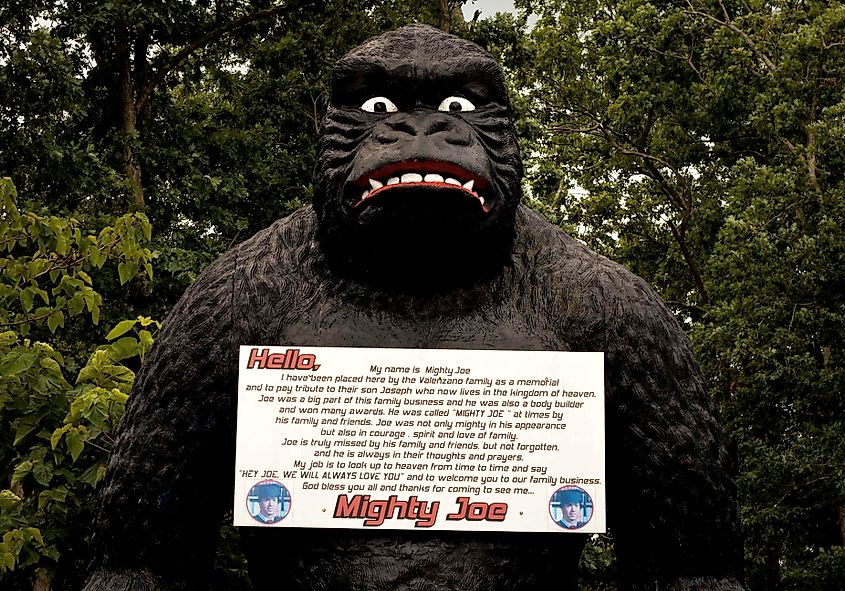Mighty Joe the Gorilla es otra gran estatua de animal que se encuentra en Garden State. Este enorme gorila de fibra de vidrio de 25 pies de altura fue construido como decoración para el paseo marítimo de Wildwood en la costa y luego comprado por los propietarios de la gasolinera Mighty Joe's en la ciudad de Shamong, quienes en 1999 lo llamaron Mighty Joe en honor a su hijo fallecido, que tenía pasión por el culturismo.