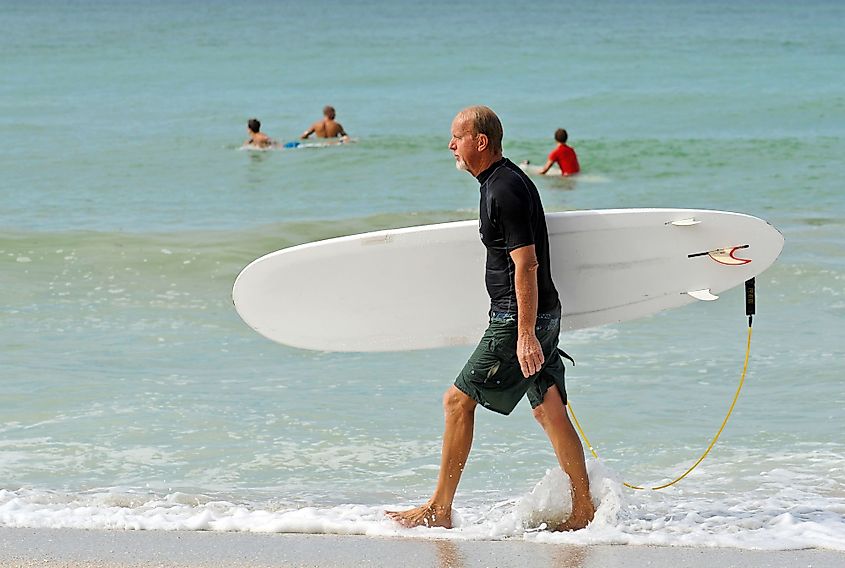 Un surfista en Holmes Beach, Anna Maria Island. Crédito de la imagen Mark Winfrey a través de Shutterstock