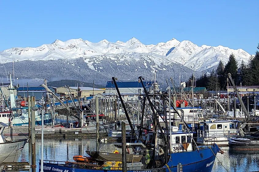 Barcos atracados en el puerto de Cordova, Alaska. Crédito editorial: Creadores de Wirestock / Shutterstock.com