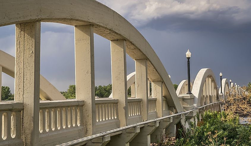 Puente arco iris sobre el río South Platte en Fort Morgan, Colorado.