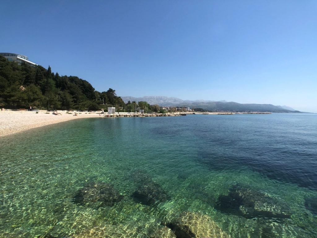 Dirígete a la playa más grande de Split para disfrutar de un día completo de actividades junto al mar. Situada al sureste de la ciudad, esta playa de guijarros blancos tiene aguas cristalinas y poco profundas.