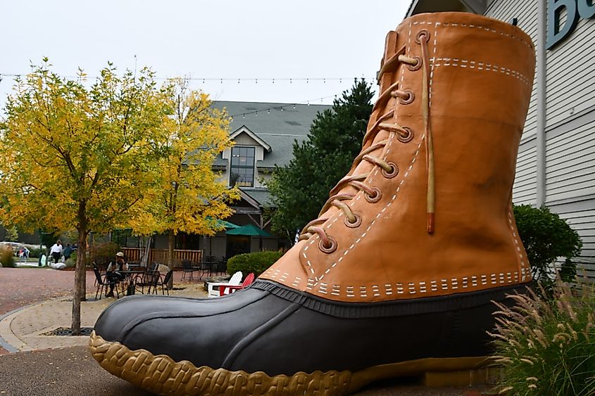 Réplica gigante de LL Bean Boot en la tienda insignia de LL Bean en Freeport, Maine. Crédito de la imagen Ritu Manoj Jethani a través de Shutterstock