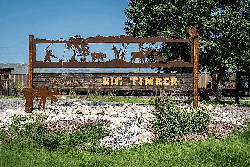Cartel de bienvenida a Big Timber, Montana. Crédito de la imagen melissamn a través de Shutterstock