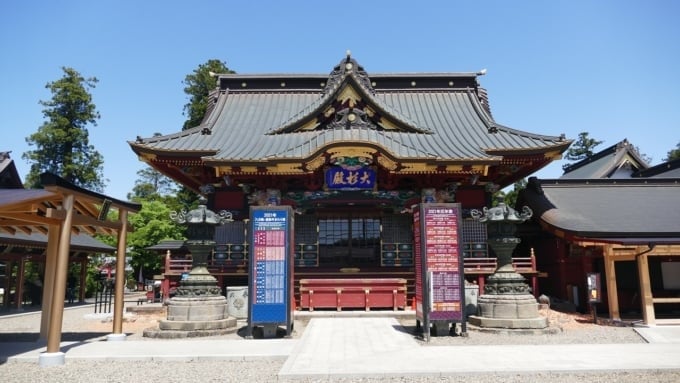 Los vibrantes y elaborados edificios del santuario Osugi le han valido el sobrenombre de "Nikko Toshogu de Ibaraki". Conocido cariñosamente como "Anbasama", es el santuario principal de los santuarios Osugi en Kanto y Tohoku. El santuario lleva el nombre de sus cedros sagrados, que son adorados como divinos. También se dice que es el lugar de nacimiento del "Anba Hayashi", un canto para protegerse de los demonios, ahora declarado patrimonio cultural intangible de Japón.