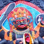 Una de las características más llamativas de la Plaza Durbar, llena de templos, es la estatua de Kal Bhairav. Este lugar es popular entre los turistas en Katmandú. A primera vista, la estatua de Kal Bhairav puede parecer encantadora y linda, pero Kal Bhairav es en realidad una encarnación del dios Shiva, que representa el terror y la destrucción. Tras una inspección más cercana, notarás que sostiene una cabeza cortada en su mano izquierda.
