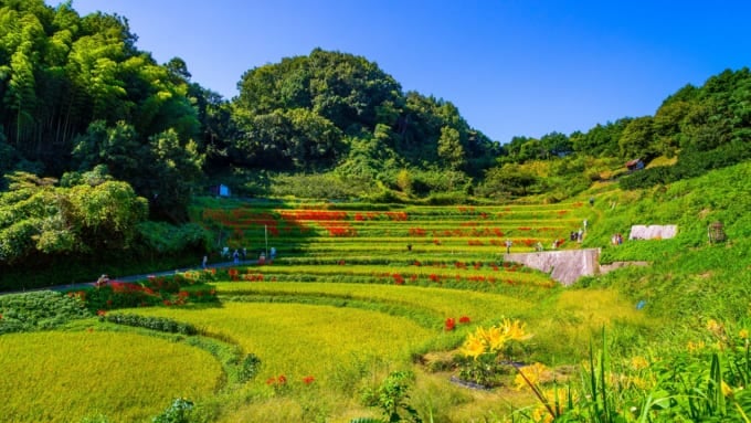 La mejor época para visitarlo es el otoño, especialmente a finales de septiembre, cuando los vibrantes lirios rojos (higanbana) florecen a lo largo de los senderos, creando un contraste impresionante con los campos de arroz dorados. Mientras el sol poniente proyecta su cálido resplandor sobre los campos maduros, te encontrarás susurrando: "Japón es realmente hermoso".