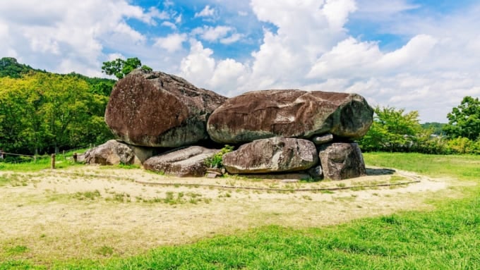 Cuando se habla de símbolos del período Asuka, me vienen a la mente los kofun (antiguos túmulos funerarios). Uno de los más emblemáticos es Ishibutai Kofun, que se cree que es la tumba de Soga no Umako, un poderoso estadista de esa época. Este sitio cuenta con una de las cámaras de piedra horizontales más grandes de Japón, construida apilando piedras enormes. El peso total de estas piedras se estima en 2.300 toneladas. Teniendo en cuenta que en aquella época no existía maquinaria pesada, cómo se transportaban estas enormes piedras sigue siendo un eterno misterio.