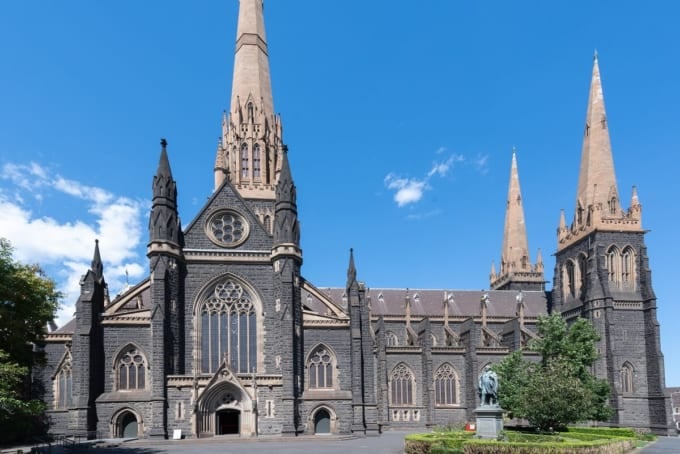 Entre los numerosos edificios históricos de Melbourne, destaca la Catedral de San Patricio con sus imponentes agujas de 103 metros que dominan el horizonte de la ciudad. Es la catedral católica de estilo gótico más grande de Australia, con un exterior hecho de piedra azul, lo que le da una apariencia majestuosa y robusta.