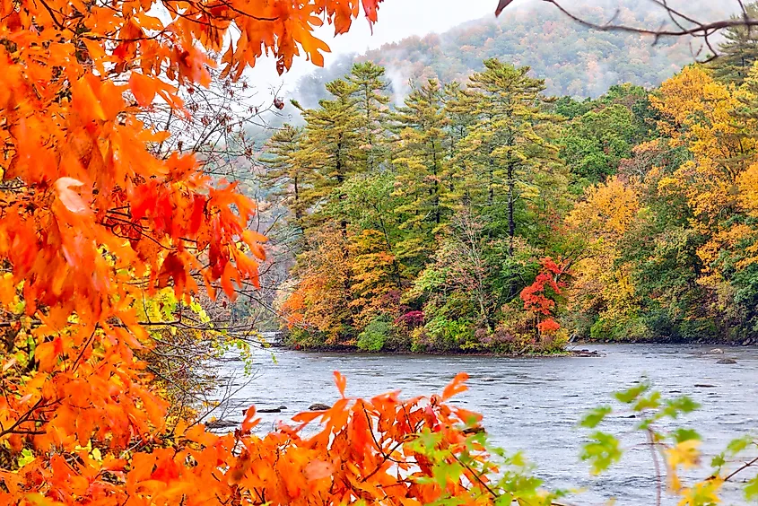 Temporada de otoño en el río Housatonic en Litchfield Hills de Connecticut.