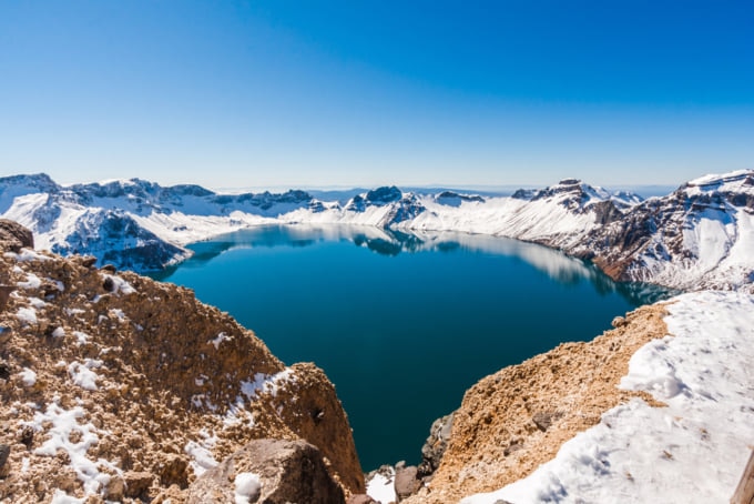 Este hermoso volcán se extiende a lo largo de la frontera de Corea del Norte y China y es visto como un lugar espiritual y sagrado para el pueblo coreano, ya que ha sido adorado por los lugareños a lo largo de la historia. Por esta razón, y por el hecho de que es la montaña más alta de la Península de Corea, muchos norcoreanos y chinos vienen de visita a ambos lados de la frontera. Al llegar a la cima de la cumbre, a menudo se pueden ver grupos de visitantes norcoreanos atravesando el otro lado del cráter. Se siente algo surrealista que con solo un corto paseo hasta el otro lado estarás dentro del Reino Ermitaño.
